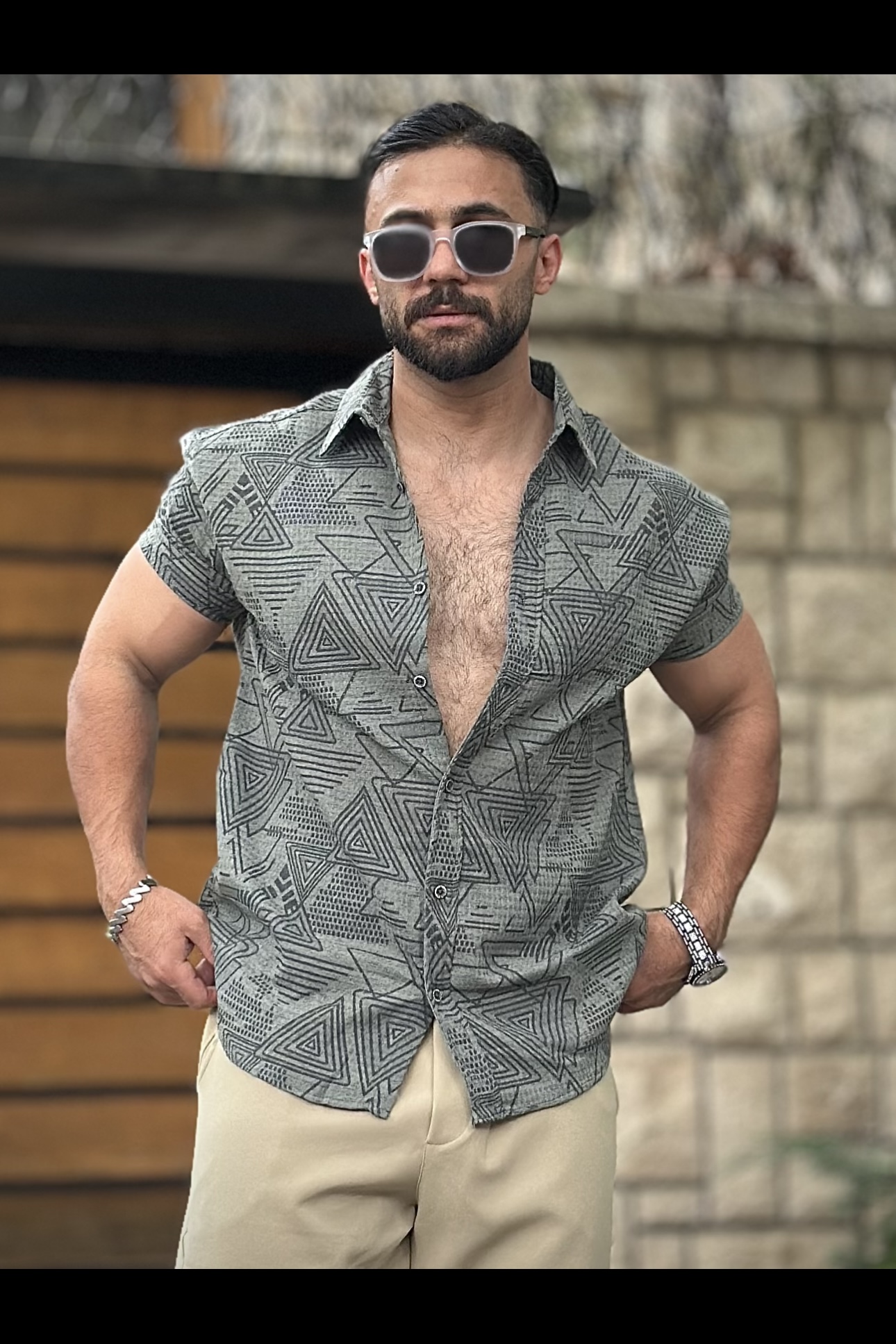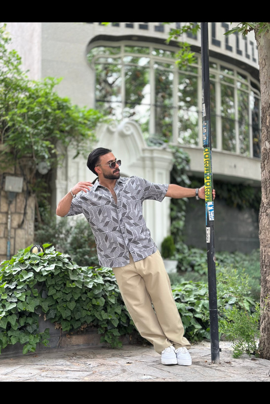 پیراهن کنفی چاپی آستین کوتاه پارچه خنک تابستانی